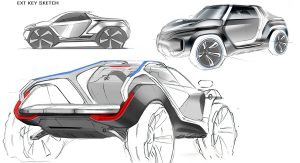 The vehicle measures roughly the same size as a Toyota RAV4 or Honda CR-V. Its design bears similarities to the Sports Ride concept unveiled at the same show two years ago, but applied to a different form and with more rugged cues.