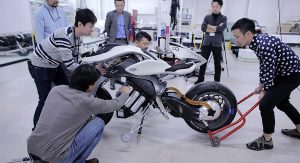 It’s an impressive project, and the concept bike shows the scars from its development (instead of the usual polished appearance of a concept vehicle) – right down to the bald tires. It may be a while before a concept like this can be put out on the road, but it’s interesting to see that Yamaha is working on it.