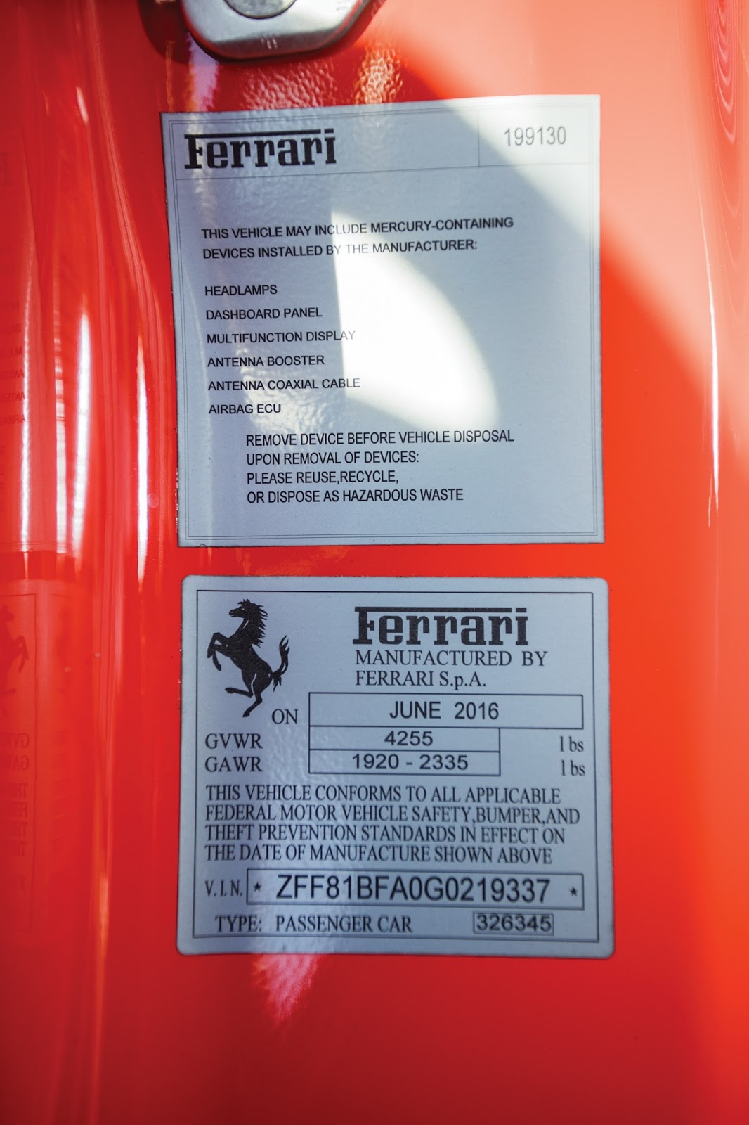 This particular example was shipped to Long Island Ferrari new in 2016, and since then, it has been driven for less than 400 miles (644km). It still has a factory warranty available until July 2019, and it’s covered by the Ferrari Genuine Maintenance program until July 2023.