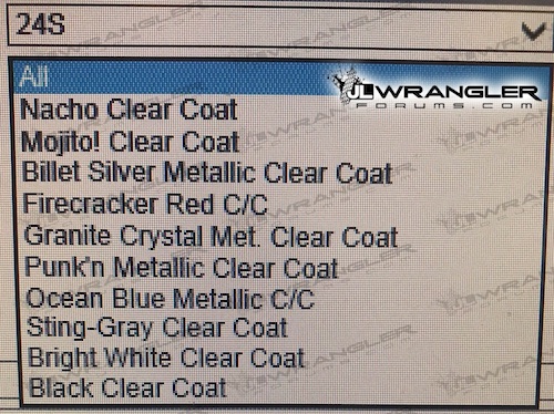 Thanks to the JL Wrangler Forums, we have the entire color options list for the new Wrangler, although these five new colors stand out:
