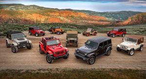 In terms of engines, the range starts with FCA’s familiar Pentastar 3.6-liter V6 delivering 285 hp and 260 lb-ft of torque. Mated to eight a six-speed manual or eight-speed automatic transmission, the four-door Wrangler Unlimited is officially rated at 17 mpg in the city and 23 mpg on the highway with the manual. Opt for the automatic and those figures are 18 mpg and 23 mpg respectively.