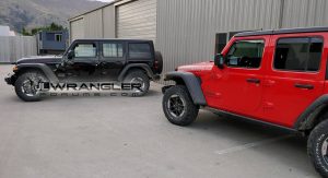 Posted by the JL Wrangler Forums, the images confirm the model will follow in the footsteps of its predecessor and adopt a unique suspension and off-road tires which will ensure the Wrangler can tackle the toughest trails of Moab.