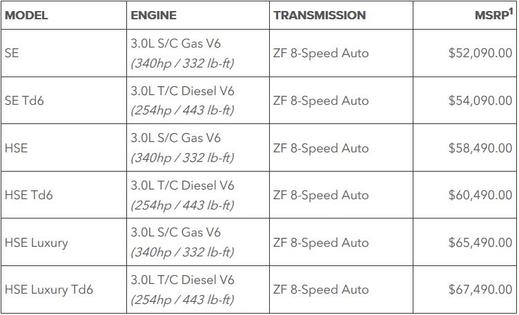 Moving on to powertrain options, while previously exclusive to HSE and HSE luxury models, the Td6 diesel unit is now also available on the entry-level SE. We’re talking about a 3.0-liter turbodiesel, with 254 HP and 443 lb-ft (600 Nm) of torque, paired to a ZF 8-speed automatic transmission.