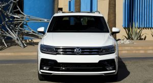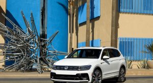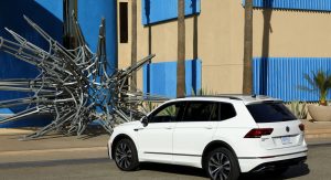 On display at the 2017 LA Auto Show, the Tiguan R-Line package adds 19″ alloys for SEL trims and 20″ alloys on SEL Premium models. Also included are R-Line badges, sporty front and rear bumpers, a glossy black diffuser, plus body-color wheel arch extensions and side skirts.