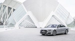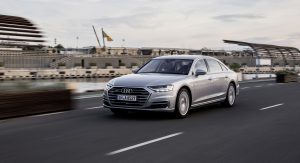 At launch, the 2019 A8 will be offered with a 3.0-liter TFSI V6 engine that is connected to an eight-speed automatic transmission and a quattro all-wheel drive system. In Europe, the engine produces 335 hp (250 kW) and 368 lb-ft (500 Nm) of torque. It enables the car to accelerate from 0-62 mph (0-100 km/h) in 5.7 seconds before hitting a limited top speed of 155 mph (250 km/h).