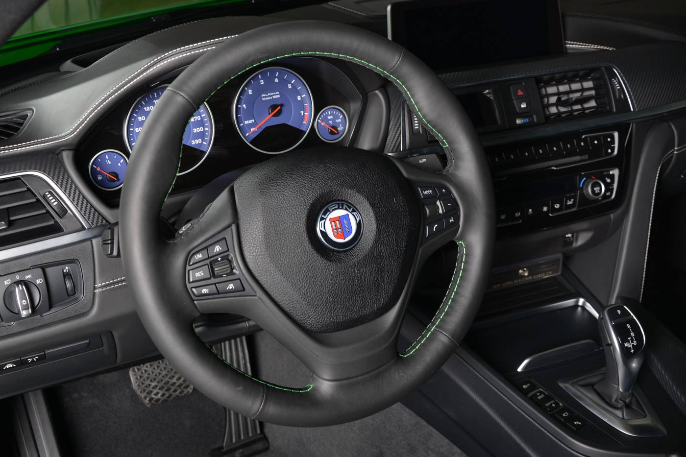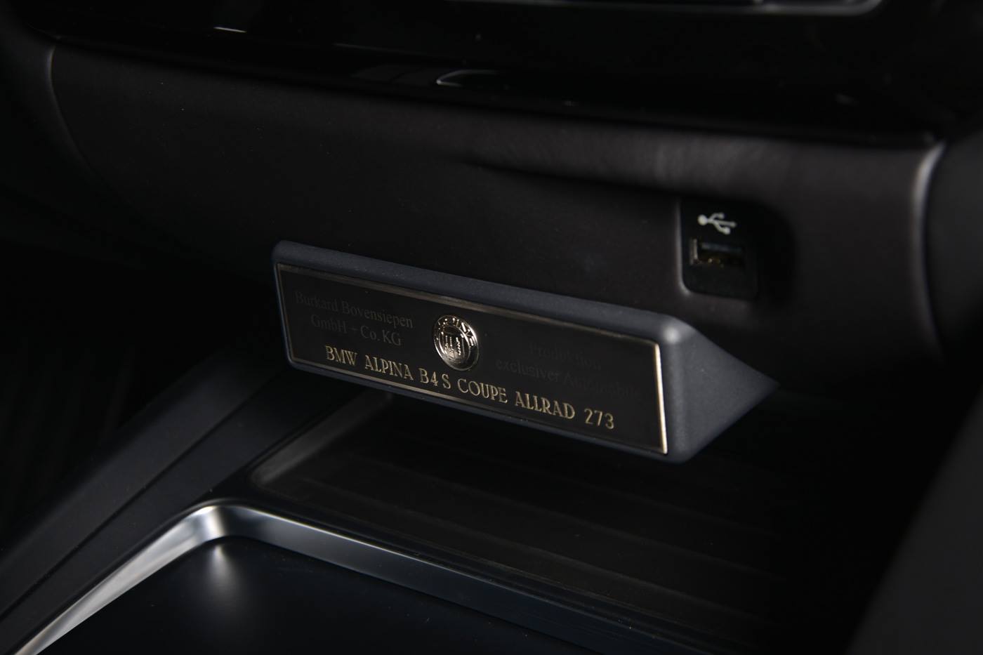 Alpina may have been responsible for the exterior, but the cabin was left to BMW Individual, which applied some contrast green stitching to the steering wheel, added blue dials for the instrument cluster, and replaced the left mid air vent with an additional display. The plaque strapped to the lower side of the central console tells users that this is indeed a very special model.