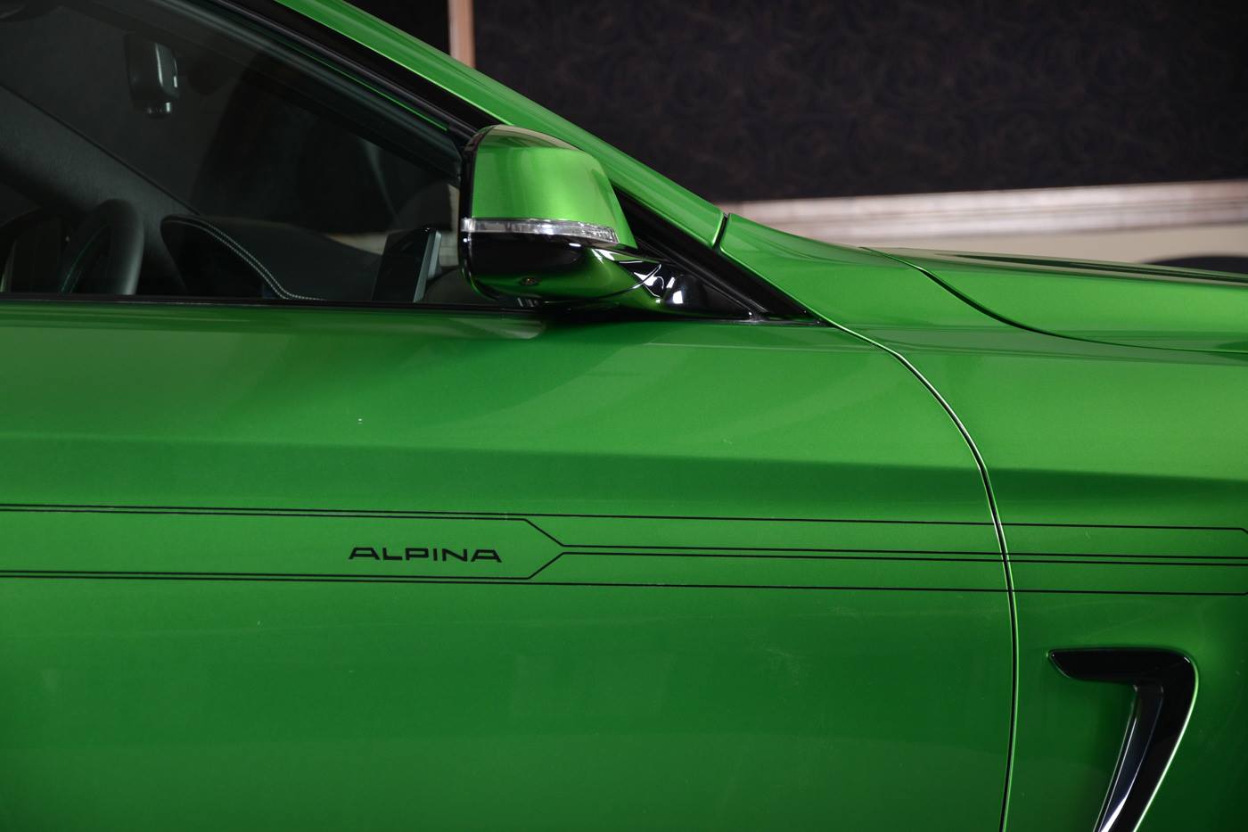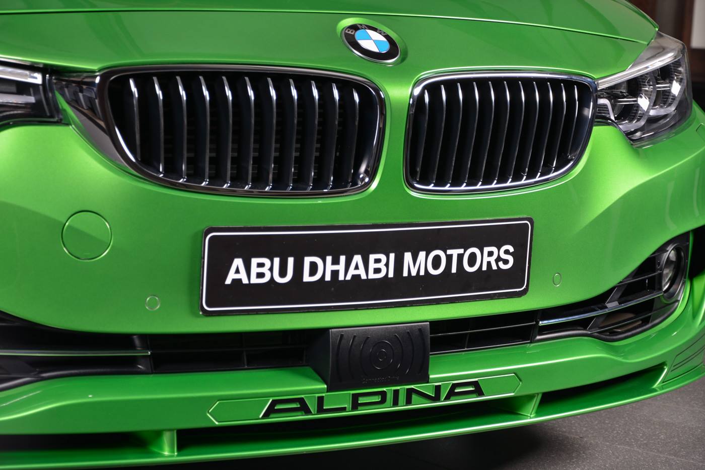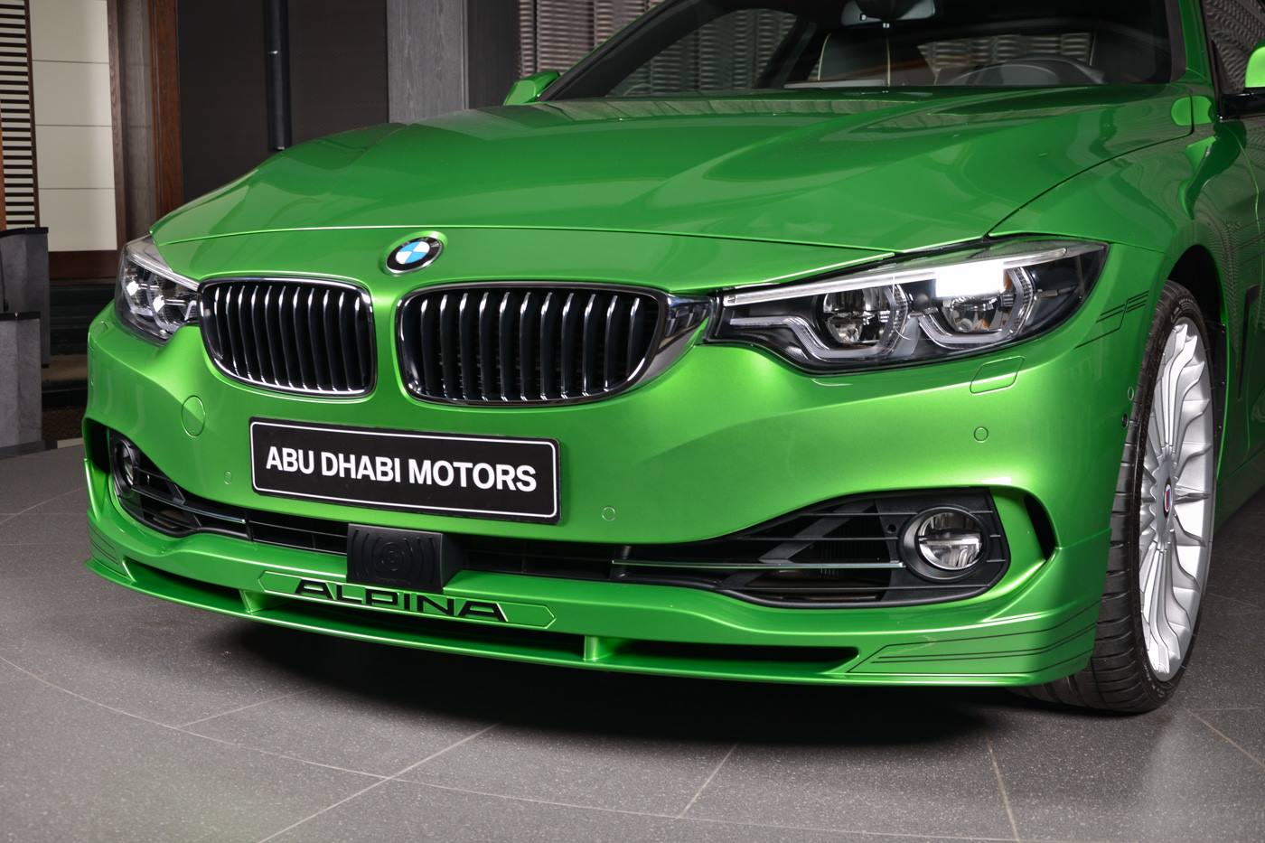 Building upon the latest Alpina B4 S Bi-Turbo, the car on display at Abu Dhabi has been fitted with a very specific body kit, whicn includes a front splitter and a boot lid spoiler. Everything was painted in Rallye Green, and this premium compact coupe also benefits from the tuner’s multi-spoke alloy wheels and a set of blue calipers.