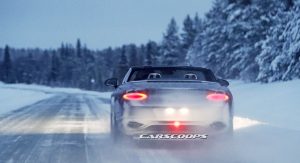 We wouldn’t be surprised to see some sort of Mercedes-style air-scarf system to blow warm air onto the occupants’ necks, and more heated surfaces than the Space Shuttle on reentry. But it’s probably a good thing that these test drivers are bundled up, with the windows up and the rear screen in place.