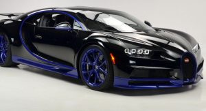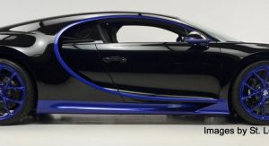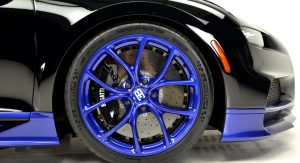 While many Chiron’s feature two-tone paint finishes, they typically have the front half painted in one color and the rear half in a different color. Instead of going down a similar route, the owner of this Chiron had the vast majority of the exterior painted black. Then, blue accents have been applied to the horseshoe grille surround, front bumper, side skirts, the car’s C-shaped signature line, and the rear bumper. Oh yeah, there are also a set of blue wheels which we think detract from the rest of the car.