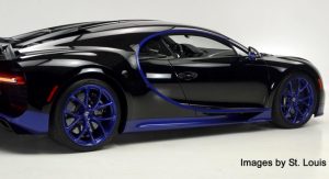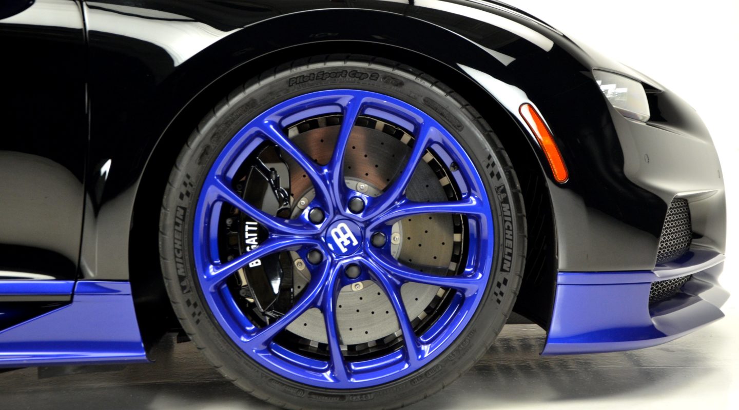 As customer deliveries of the Bugatti Chiron ramp up, a staggering black and blue example has landed on U.S. soil.