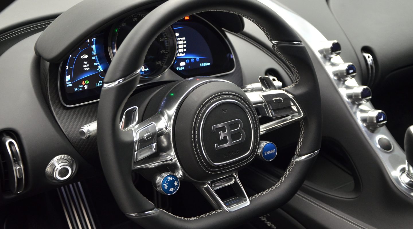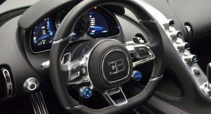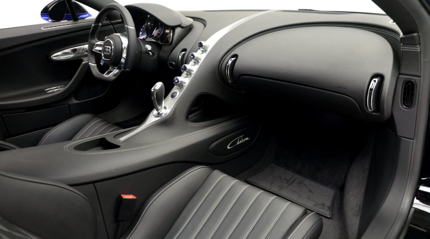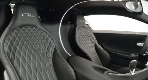 Nevertheless, the interior of this Chiron, just like every other, is a thing of beauty. Most surfaces are finished either in black leather or carbon fiber but there is also a range of aluminum accents and grey stitching.