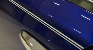 Also worth noting is the wheels’ Salamanca Blue center and contrasting English White stripes making the car’s strong shoulder line stand out even more.