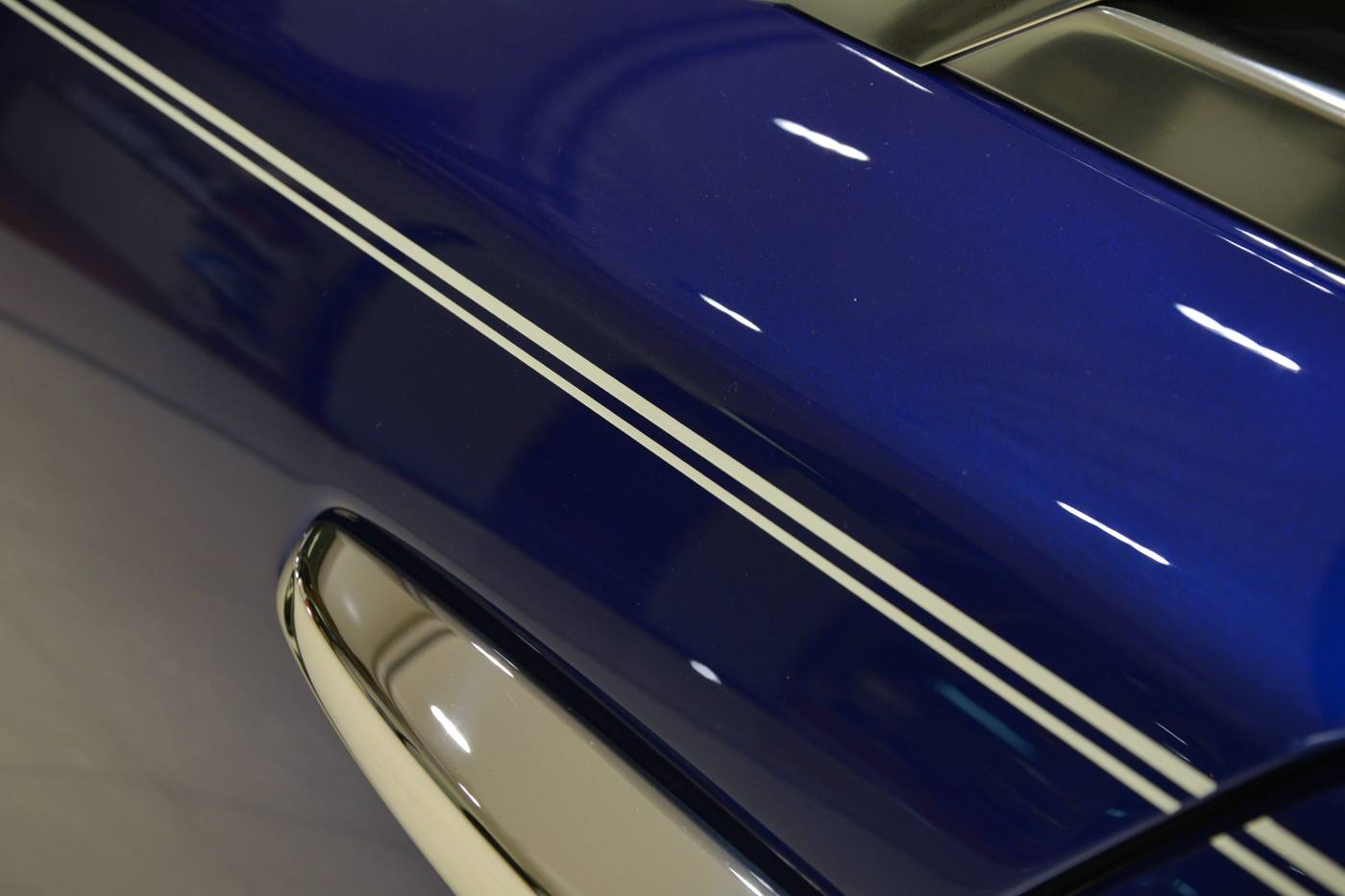 Also worth noting is the wheels’ Salamanca Blue center and contrasting English White stripes making the car’s strong shoulder line stand out even more.