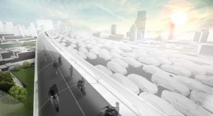 With that in mind, the concept roadway is elevated above existing road infrastructure and would be modular in design, making it particularly economical to build.