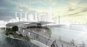 Unlike a traditional road, the E³ Way is largely covered by a roof and could, therefore, regulate temperatures through a cooling system with purified rainwater, doubling as a means to clean the road at night or during times of low use.