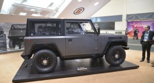 It’s called the B1 and it was first unveiled this past summer at the Classic Car Club of Manhattan. Naturally, as the world’s first “all-electric, all-wheel drive, off/on road sport utility truck”, the B1 couldn’t have skipped this year’s LA Auto Show.