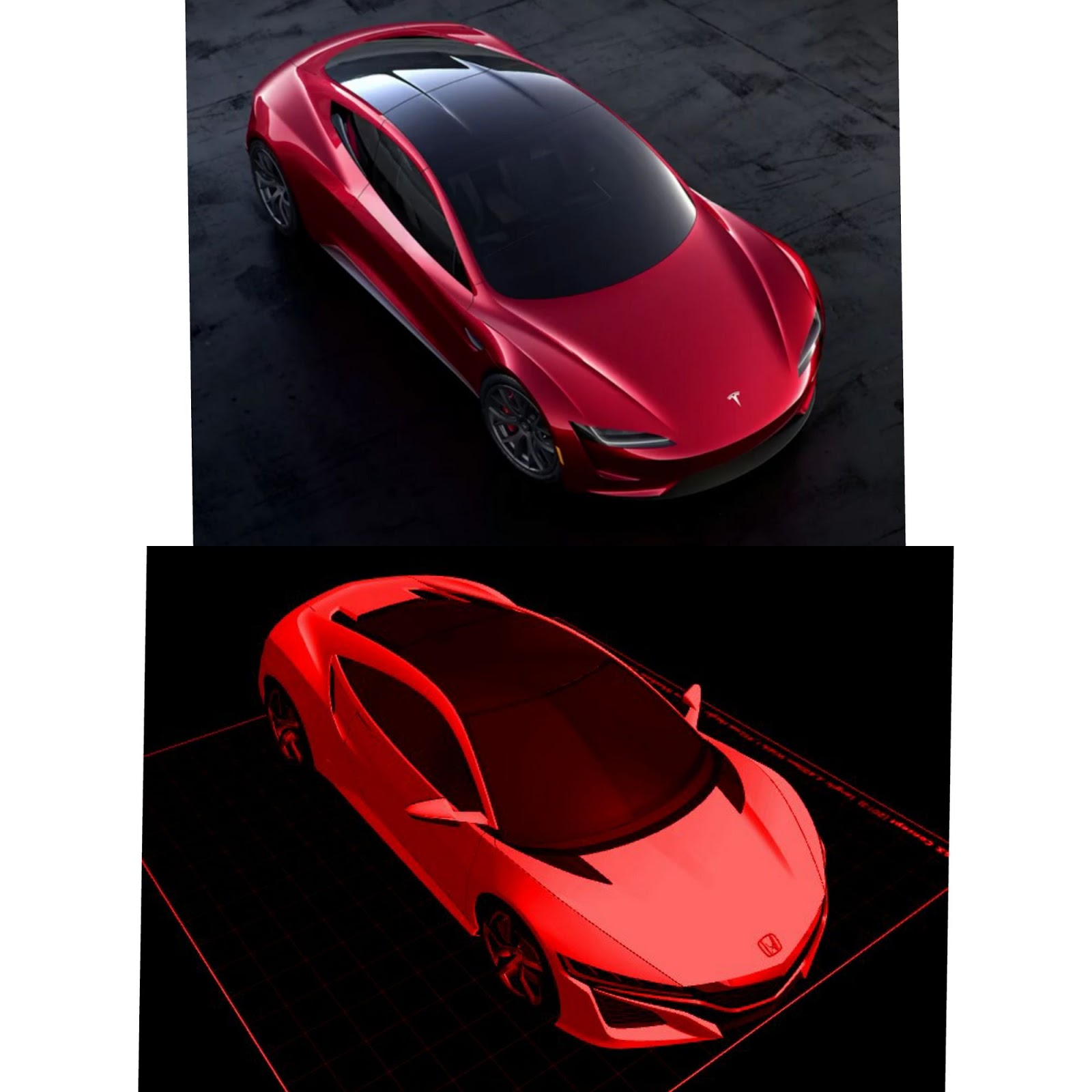 The designer points out a number of similarities between the duo. For starters, both the Roadster show car and the NSX utilize similar wheels, although the Tesla does have a few more spokes. Elsewhere, we can see a similar body line just after the front wheel arch, reaching back along the doors. The rear side windows of the duo also bear some resemblance to each other.