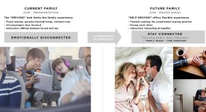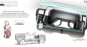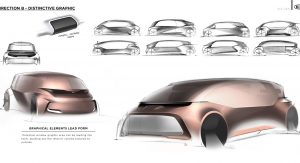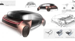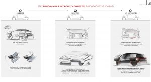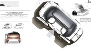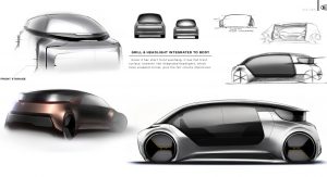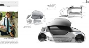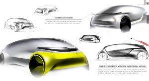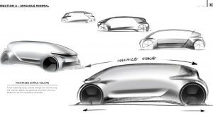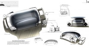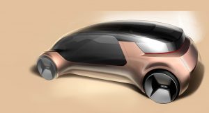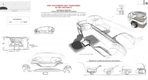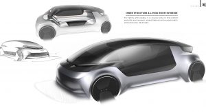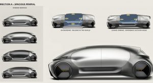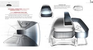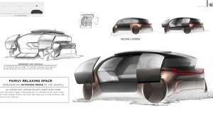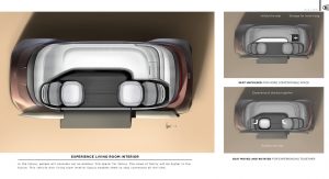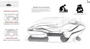 As the concept is fully-autonomous, there’s no need to waste space with a traditional dashboard or steering wheel. Consequently, the concept’s interior consists of two large seats facing each other and a large bench seat to the side which could act as the perfect place to rest a child.