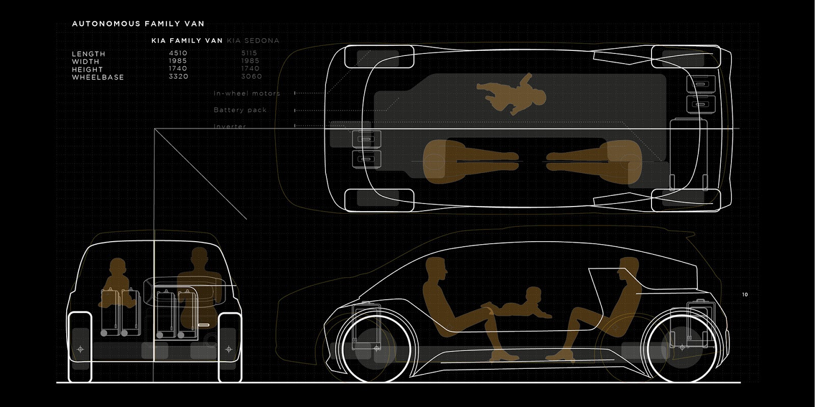 Simply dubbed the Kia Autonomous family van, the vehicle sets out to achieve exactly what its name indicates. As such, it has been designed with an interior as spacious as that of the Kia Sedona, despite being over 60 cm shorter.