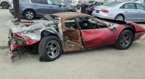 This 512 BB, currently being auctioned off by Copart, has attracted a highest bid of $39,750, despite being destroyed by fire and completely unrepairable.