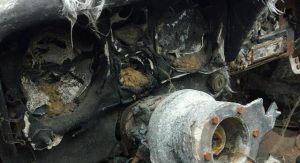 No details about what caused the fire have been made public, but based on the images, it appears as if the fire started in either the engine bay or in the cabin. In either case, the engine and transmission have been wrecked by the flames and the interior left as nothing more than a charcoaled mess of plastic, metal and rubber.