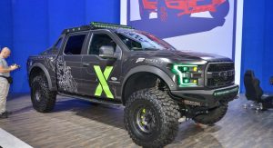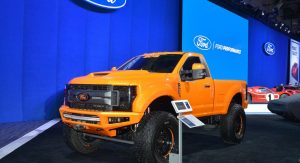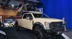 Beyond the variety of hot hatches being displayed by Ford, there are also a number of crazy Ford F-Series vehicles, none more wild than the F-350 Recon Adventure dubbed “The Operator”. Built by LGE-CTS Motorsports, it adopts a host of modifications and can carry a large ATV with ease.