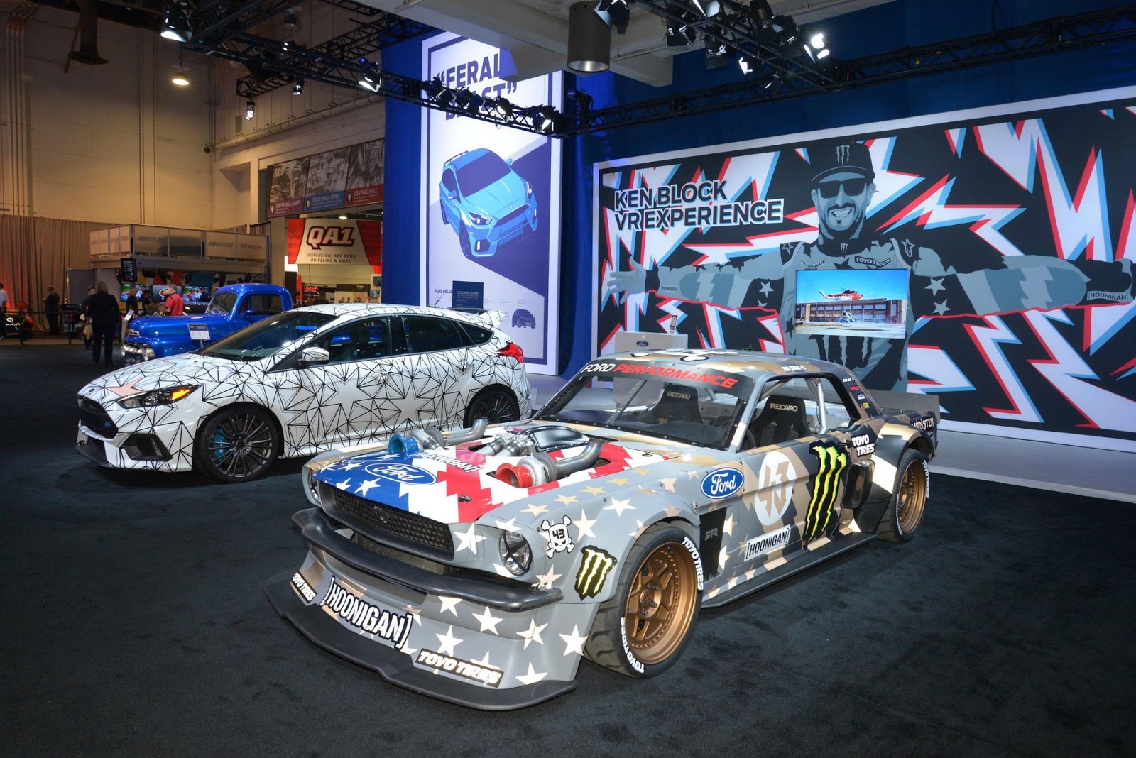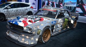 Front and center at the display is Ken Block’s crazy 1400 hp Ford Mustang Hoonicorn V2, complete with an all-American livery and turning heads from every angle.
