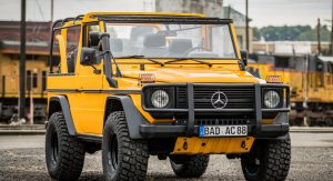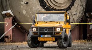 The interior metal surfaces were matched to the exterior color, which we have to admit looks ace in the Geländewagen, and the same stands for the bigger wheels/tires. Power is provided by a non-original 2.5-liter OM602 five-cylinder diesel engine, with the car featuring locking differentials front and rear.