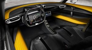 Unsurprisingly, the cabin is quite narrow and consists of two bucket seats which appear to be fixed to the floor. Elsewhere, the Venom F5 includes a narrow, carbon fiber transmission tunnel that runs up to a large touchscreen housing the car’s infotainment features. Elsewhere, we can see a trio of air vents arranged in a similar format to the tailpipes.