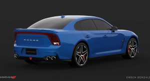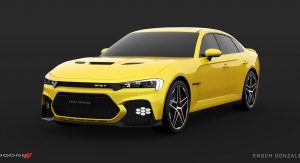 The photoshopper has focused on the range-topping version of the Charger, the SRT Hellcat, fitting it with new bumpers and lights and toning down some of its aggressive lines. While the front end looks quite nice, the rear isn’t exactly appealing with those gigantic taillights.