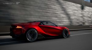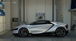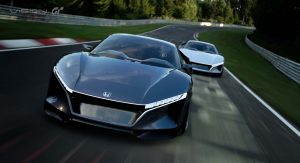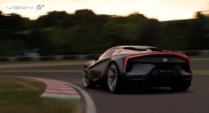 It also looks familiar: distinctly similar, in fact, to the patent images we saw over two years ago. At that point we thought we were looking at a baby NSX. And it could manifest into just that. But for now, it’s confined to the imaginary world of the Gran Turismo gaming franchise.