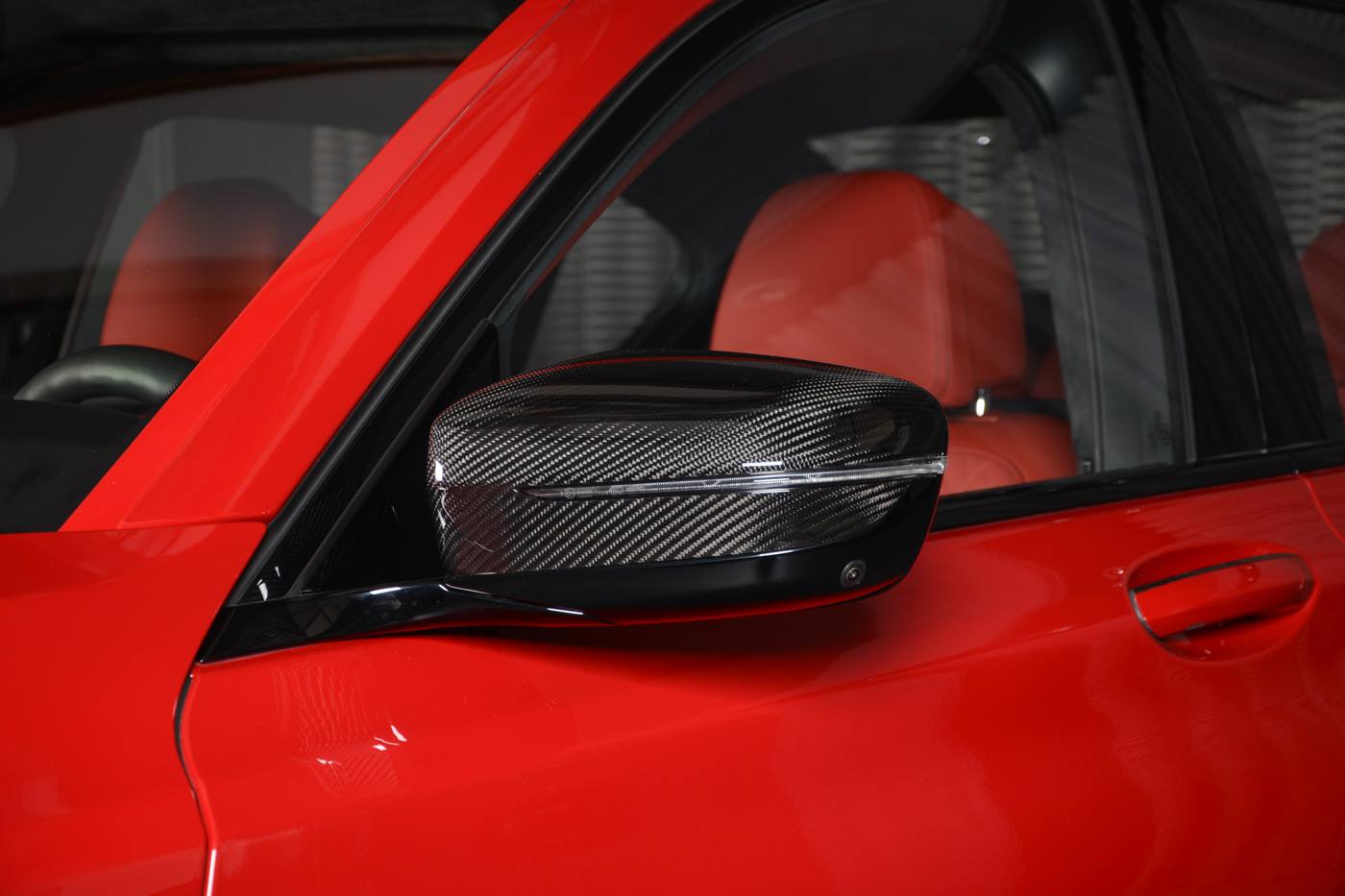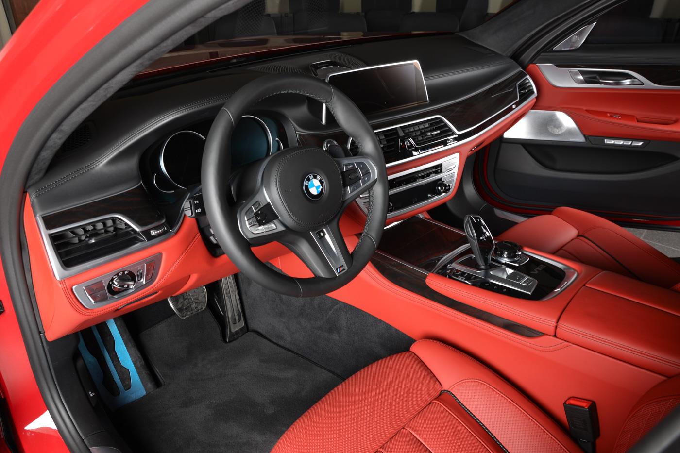 Besides the attention-grabbing red hue, other enhancements include the 3D Design body kit, M Performance trunk lid spoiler, carbon fiber mirror covers, dual tone M sport wheels and blue calipers.