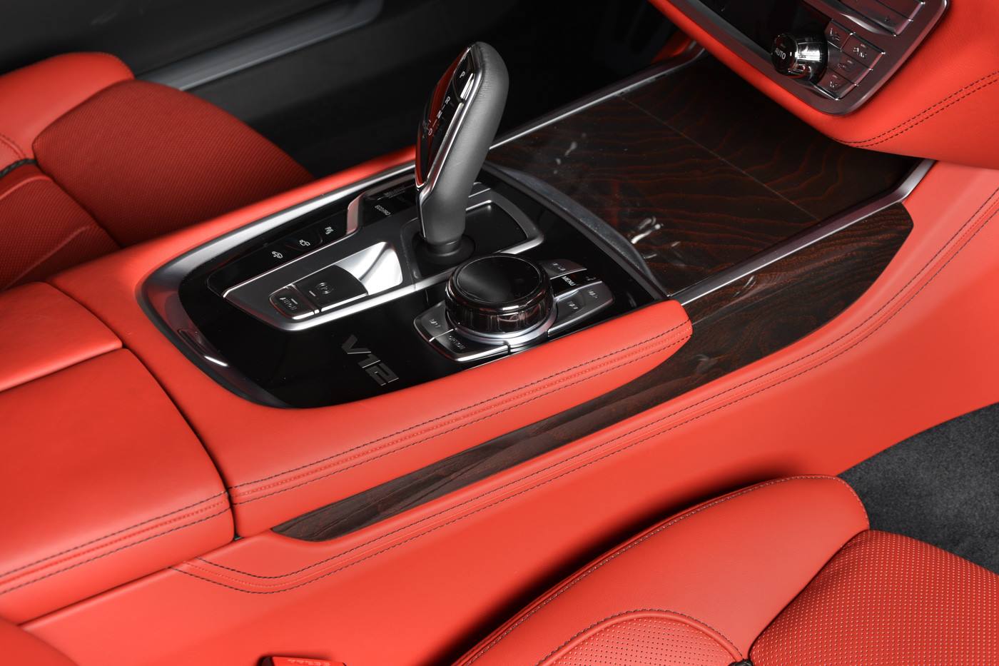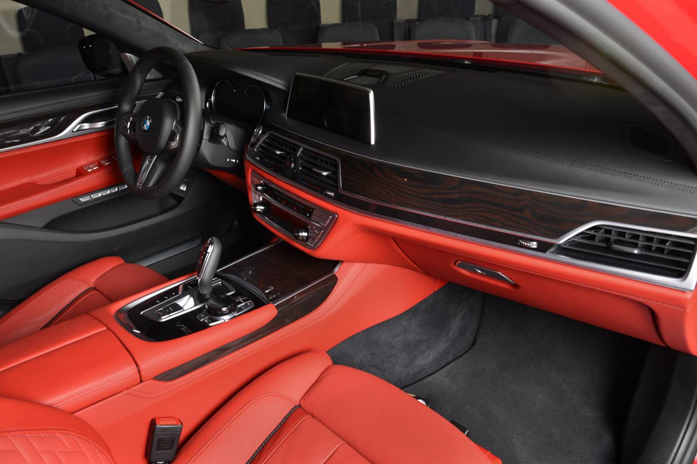 Inside, the red theme continues with red leather throughout, on not just the seats but also the lower dashboard, center console and door panels. You’ll also find a proper amount of black leather and some dark wood trim.