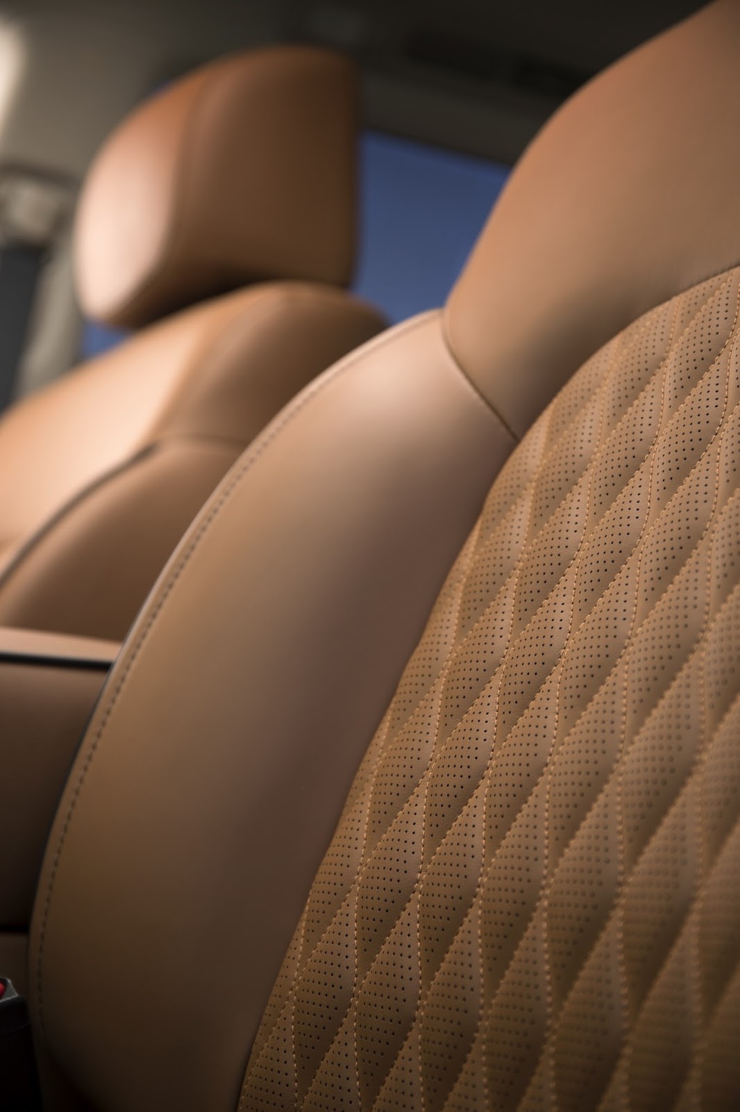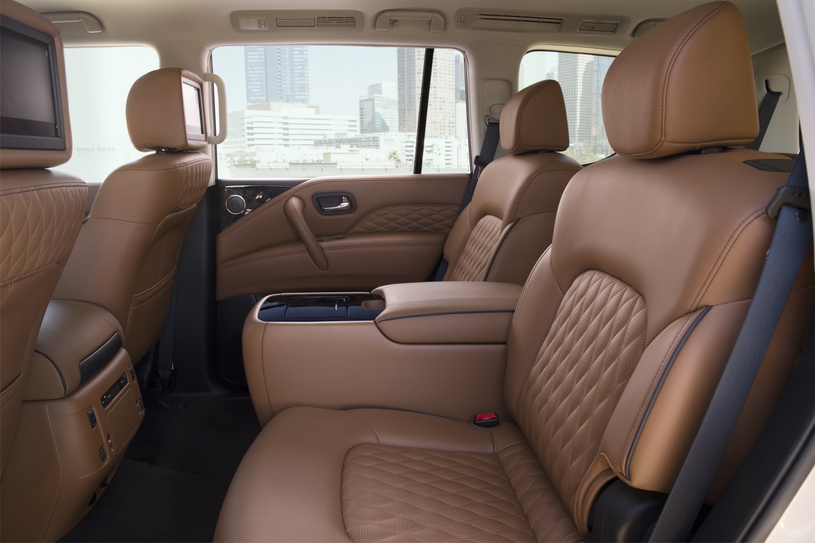 The interior is finished in a range of rich new materials, as quilted leather has been used on not just the seats, but also the door panels and armrests. As for the different interior trims available, aside from the standard Stratford Burl gloss wood trim, QX80 models with Graphite leather are also offered with a dark brown Espresso Burl. Meanwhile, models with Wheat or Saddle Brown upholstery are available with an even darker Charcoal Burl trim.