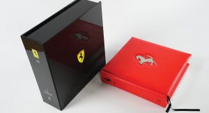 The publisher came out with The Official Ferrari Opus in 2011, with 852 twenty-square-inch pages to weigh a total of over 80 pounds. The book was offered in several versions, ranging from the Classic edition (for “only” $4,100) to the Diamante edition you see here.
