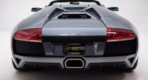 That’s what we have here, enduring as something of a rarity. It’s a 2008 Murcielago LP640-4 Roadster, in Grigio Avlon Metallic with a black and grey interior – and a six-speed stick-shift. According to Cats Exotics (the Seattle-area dealer that’s selling it on JamesEdition), it’s one of only four so equipped and delivered to the United States, and the only one in this color combination.