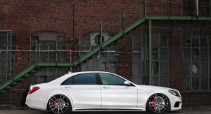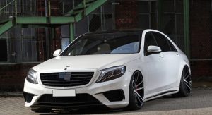The German tuner has made the S63 50mm (nearly 2in) wider than the stock model thanks to the enlarged fenders, while also giving it new rocker panels and a rear diffuser with Black Series-inspired tailpipes.