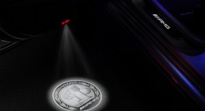 “The AMG emblem shows the cornerstones of the high performance brand, Mercedes-AMG: an apple tree on the river symbolizes the location in Affalterbach, Germany. The cam, valve, and valve spring symbolize the engine manufacturing”, the automaker says. “With the new AMG emblem projector, the emblem can now be projected into the entrance area, next to the vehicle in a high-tech 3D look.”