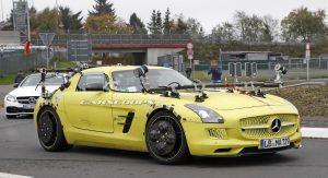 The Mercedes SLS AMG Electric Drive was introduced five years ago at the 2012 Paris Motor Show so it’s surprising to learn that the model was recently spotted undergoing testing on and around the Nürburgring.