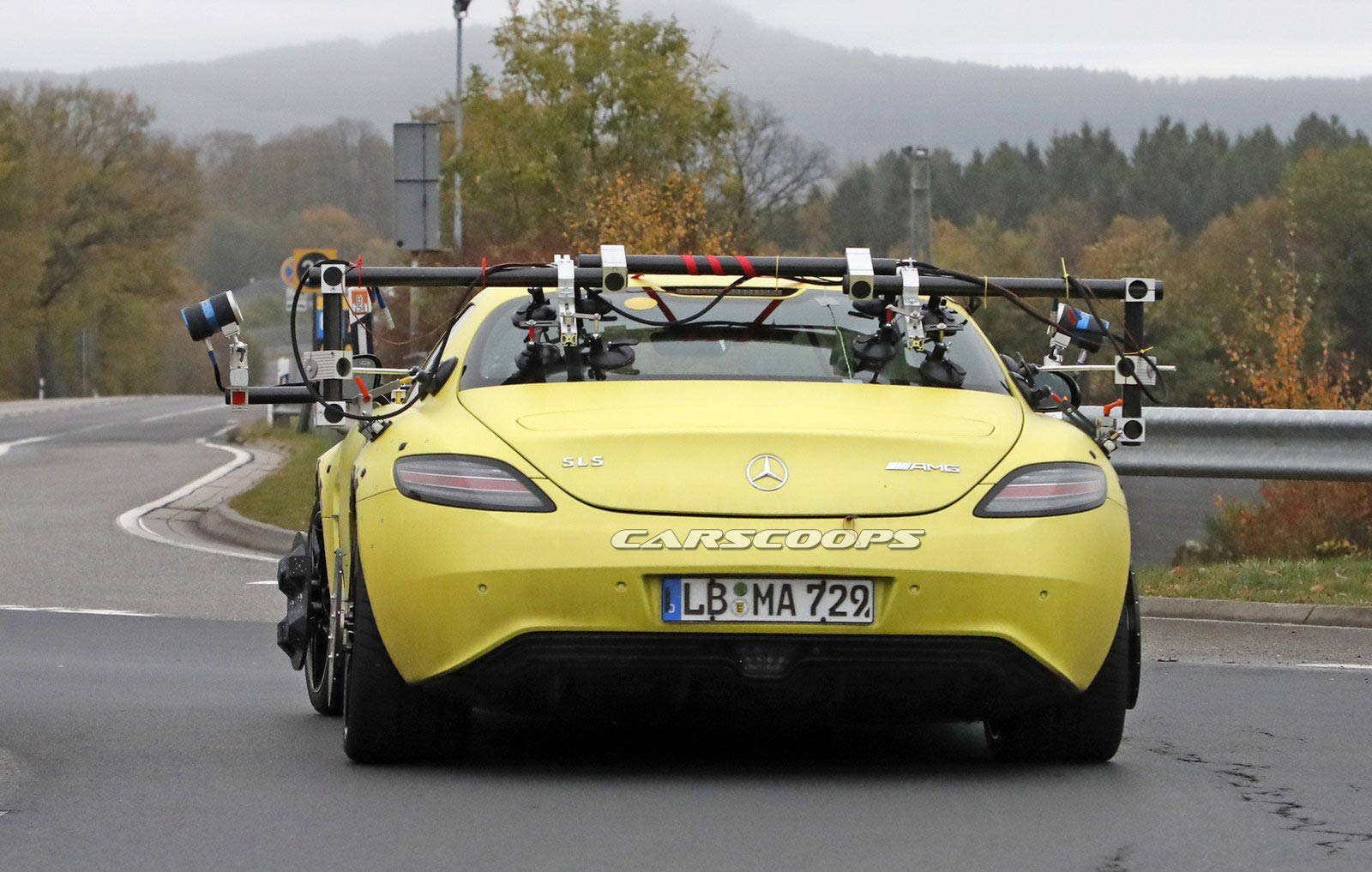 Decked out in an almost comical amount of equipment, the mysterious model has us scratching our heads as we’re not entirely sure what’s going on. One possibility is that Mercedes is working on an electric version of the AMG GT and the company decided to use an old SLS AMG Electric Drive as a mule.