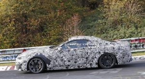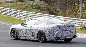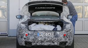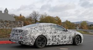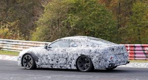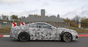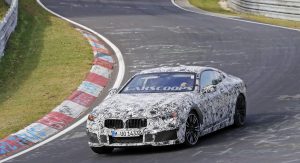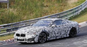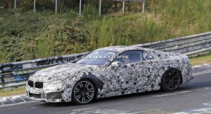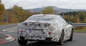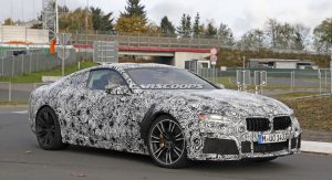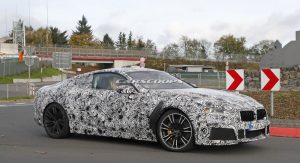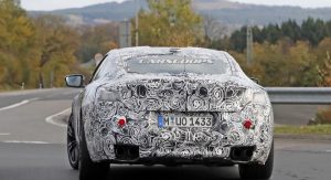 The M8 remains extremely well camouflaged. We can tell it’s got the bigger intakes, quad exhaust system, bigger brakes and so on, although it’s not wearing its production headlights, which we already saw two months ago on a regular 8-Series prototype.