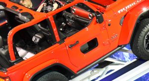 The biggest change in the optional half doors is of course that hole in the middle which we’re guessing is there to aid visibility in off-road conditions. Jeep is said to offer a plastic cover -painted in the same color as the door- to fill that hole when required.