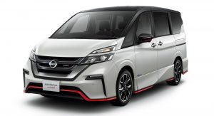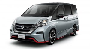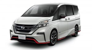The Serena’s NISMO transformation also includes an ECU tune along with a sports muffler for the 2.0-liter four-cylinder gasoline engine, though Nissan hasn’t disclosed output figures (the standard engine produces 147 horses). A new custom suspension that includes different shocks, springs and stabilizer together with new cross members and re-tuned VDC (Vehicle Dynamics Control) with an off switch, are also part of the package.
