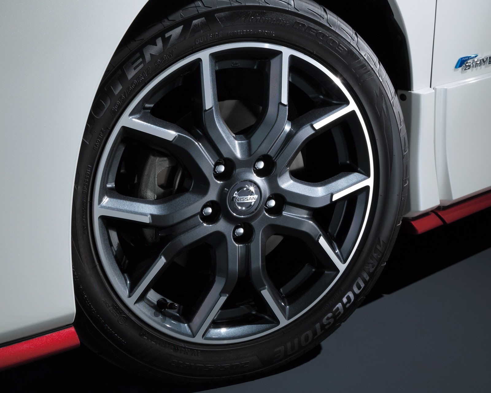 Starting at the exterior, the Serena Nismo receives a custom front bumper with LED daytime running lights in the shape of the number ‘7’. Elsewhere, there is a host of bright red accents, including on the side skirts and around the rear fascia, along with 17-inch wheels riding on Bridgestone Potenza Adrenalin RE003 tires size 205/50/R17. .