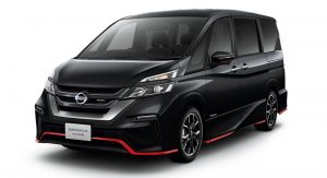 The Serena’s NISMO transformation also includes an ECU tune along with a sports muffler for the 2.0-liter four-cylinder gasoline engine, though Nissan hasn’t disclosed output figures (the standard engine produces 147 horses). A new custom suspension that includes different shocks, springs and stabilizer together with new cross members and re-tuned VDC (Vehicle Dynamics Control) with an off switch, are also part of the package.