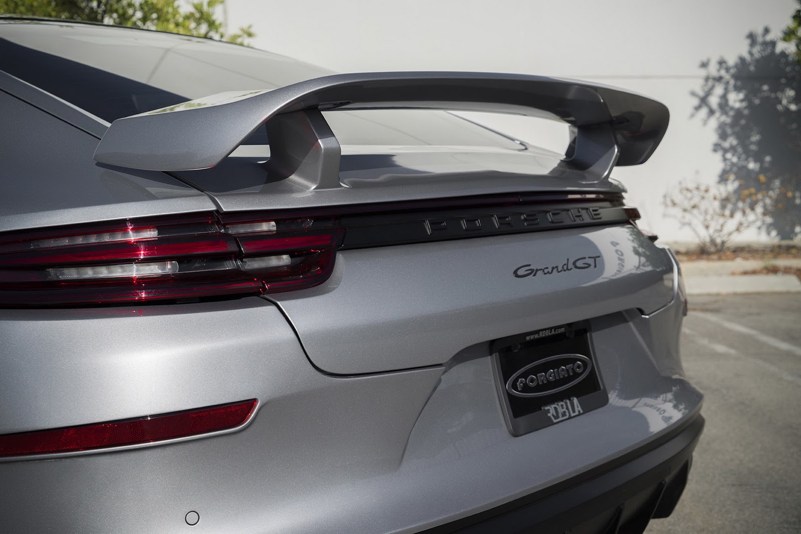 This Panamera is wearing a TechArt GT aero kit, which adds new front and rear aprons, an integrated splitter, side skirts, rear diffuser and a large rear wing that’s fixed into place.