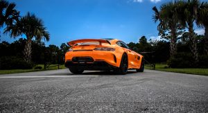 When you add everything up, this Mercedes-AMG GT R is now good for 761hp (772PS) and 632lb-ft (857Nm) of torque, compared to the stock model that makes 577hp (585PS) and 516lb-ft (700Nm) of torque.