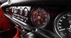 This 1969 Jaguar 420 has received a complete overhaul inside and out, courtesy of car personalization atelier Carbon Motors, which specializes in everything from custom upholstery, hi-fi audio systems, exotic trim coatings as well as doing full restorations, which sometimes include metal work and rust removal.