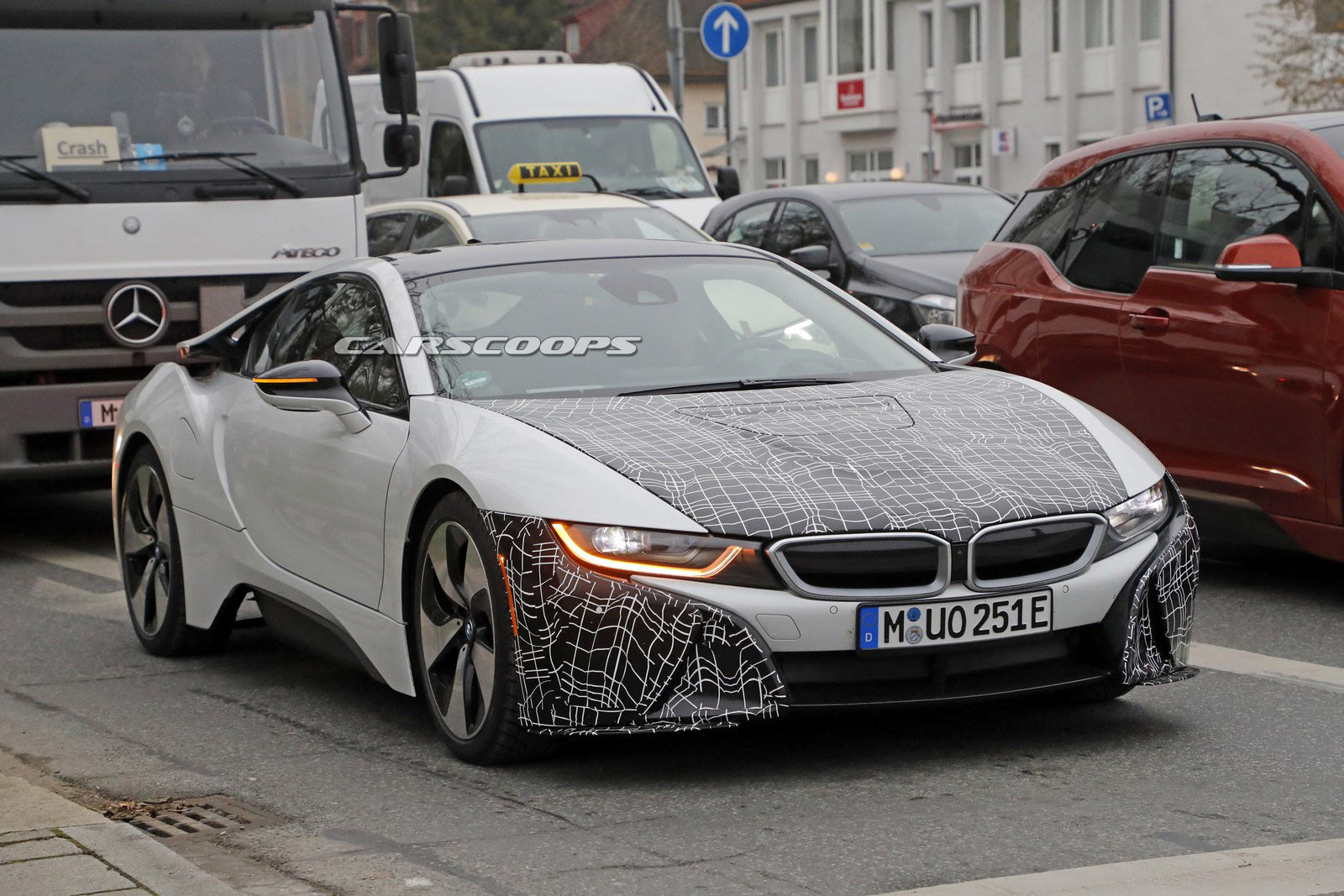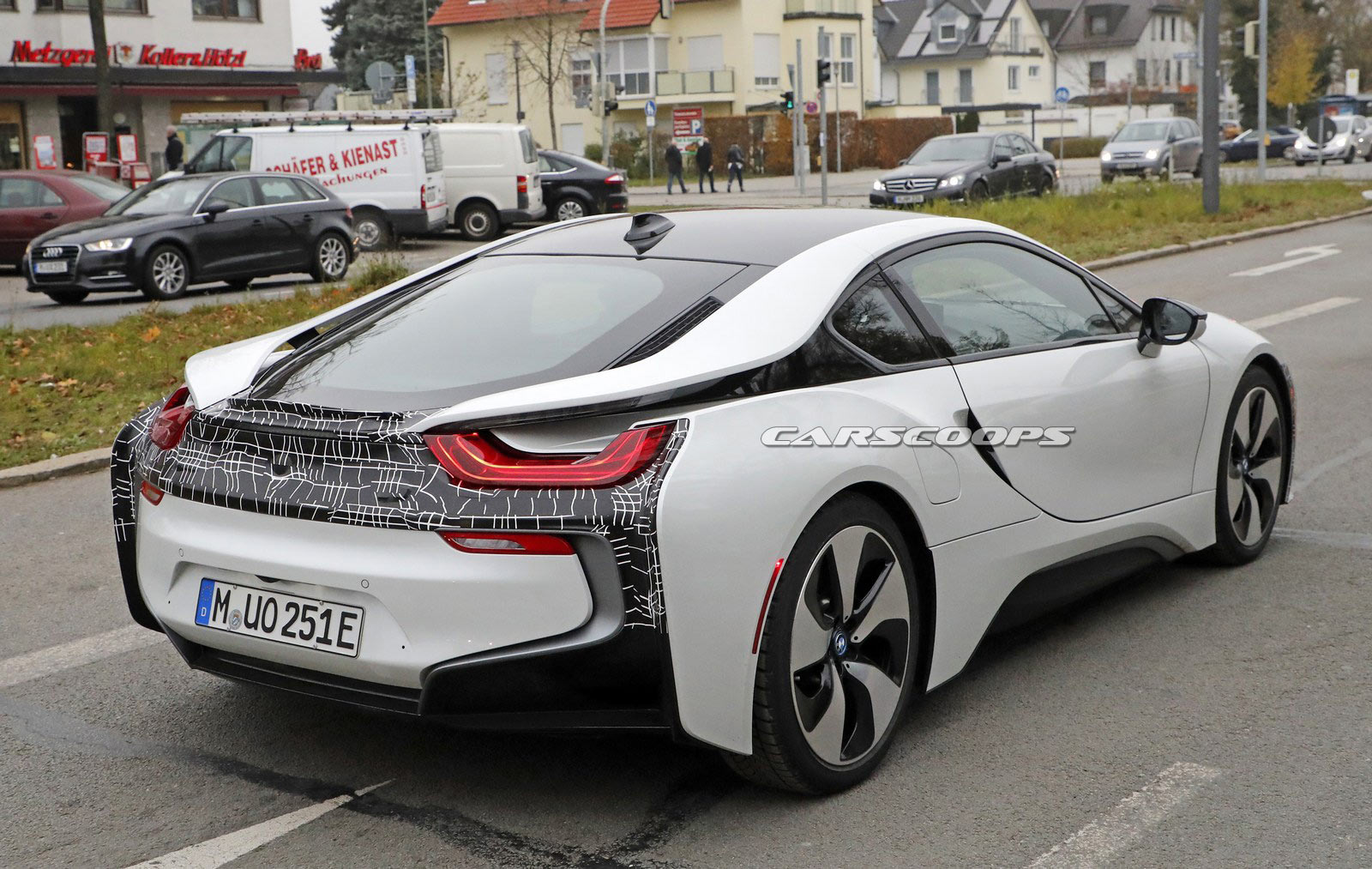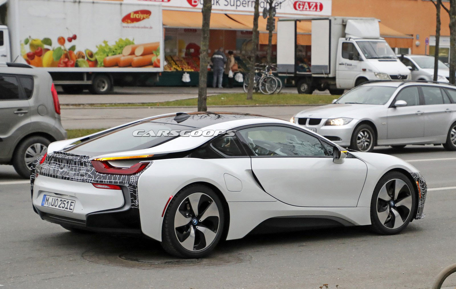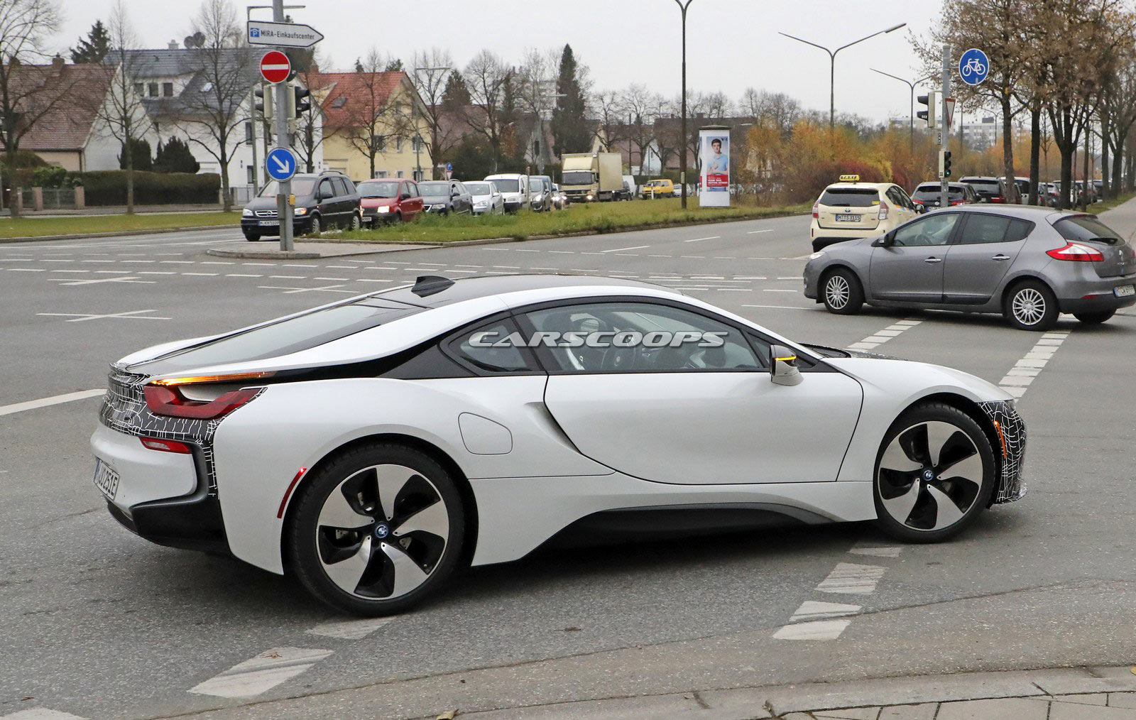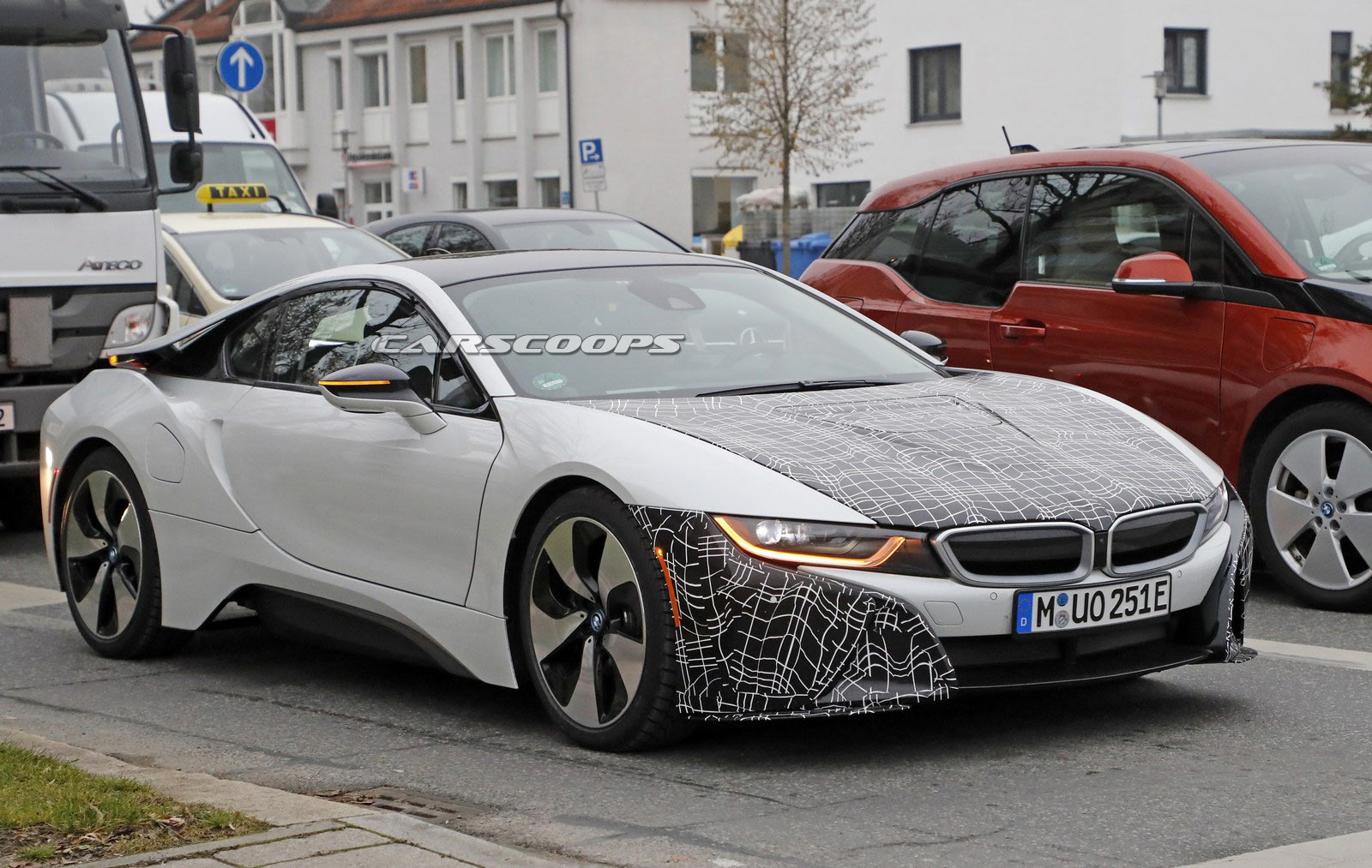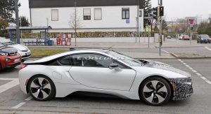 The BMW i8 Roadster is set to be unveiled at the Los Angeles Auto Show later this month and spy photographers have just snapped photos of what appears to be an upgraded i8 coupe.