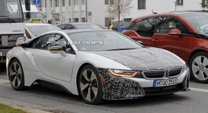 Caught undergoing testing in Germany, the mysterious model has our spy shooters wondering if it’s the facelifted i8 or a more powerful i8 S. They’re inclined to believe it is the latter as this particular prototype has a deeper front splitter, a small rear spoiler, and what appears to be a fully enclosed hood.